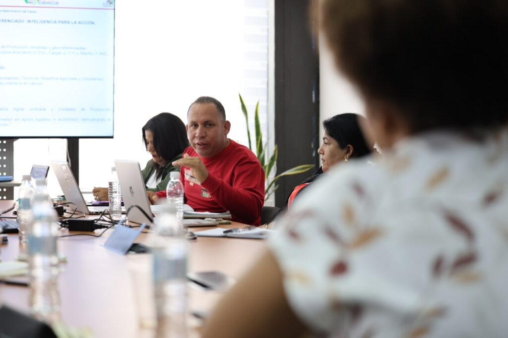 (Caracas, 07 de octubre de 2025).- La ministra del Poder Popular para Ciencia y Tecnología, Gabriela Jiménez Ramírez, sostuvo una reunión con representantes de entes e instituciones adscritas al ministerio, con el fin de afinar una agenda de trabajo que robustezca el Plan Nacional Científico-Tecnológico para el Fortalecimiento del Cacao para 2025-2028.